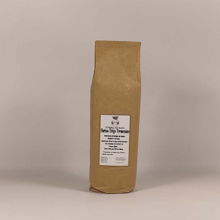 Es una harina 100% natural molida en piedra, con certificación IXP, que conserva el germen y nutrientes del trigo autóctono gallego. Ideal para panes artesanales y repostería rústica.
